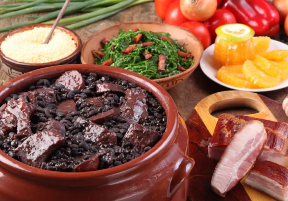 Feijoada or feijoada completa is Brazil's national dish, a hearty stew featuring pork and black beans. The dish is consumed throughout the country, and every family in Brazil has their own, special recipe. Sautéed greens, cheese rolls, rice, and fresh, sliced oranges are served as an accompaniment to the smoked pork and richly flavored black beans.